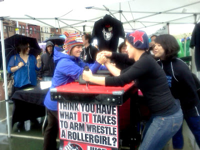 We were in a fun section of the show near the local roller derby team who were arm wrestling with people for $1 and whooping it up.